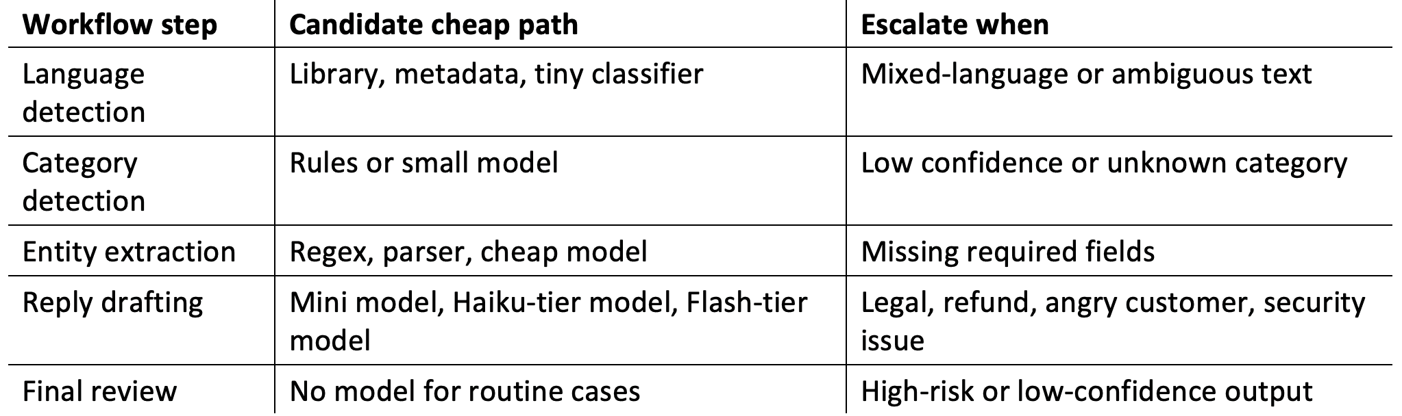 Table 2. AI Agent Workflow: Cheap Path vs. Escalation Triggers